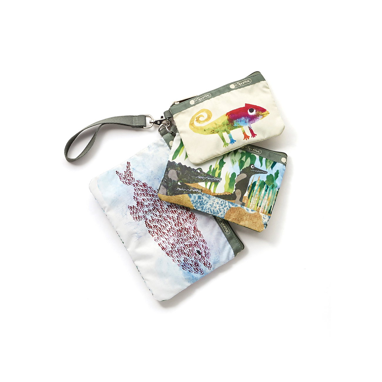 「スイミー」「コーネリアス」「じぶんだけのいろ」レオ・レオニの代表作のアートを使用した3連ポーチ。リストレットストラップは取り外し可能で、それぞれ単品でも使用可能。