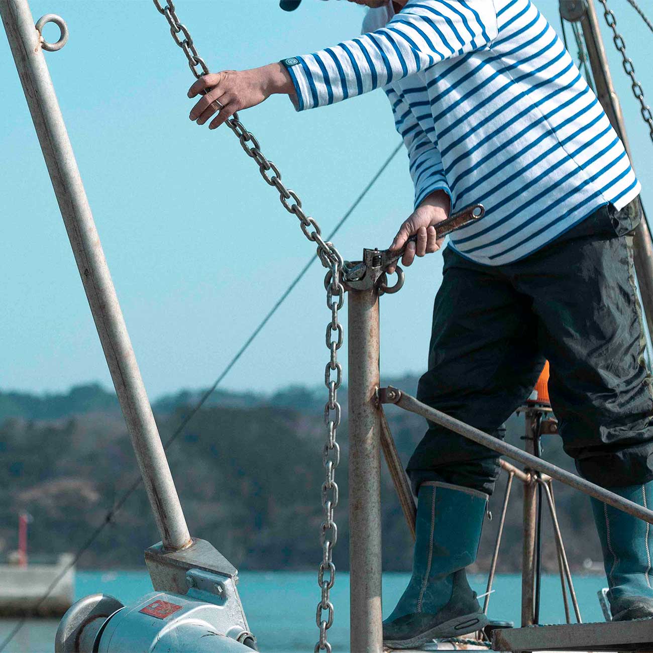 ISHINOMAKI SHIRTは、海とともに生きる人に向けて作られたバスクシャツ。東北の若手漁師集団「FISHERMAN JAPAN(フィッシャーマンジャパン)」、仙台発祥のカットソーブランド「Tieasy Authentic Classic(ティージーオーセンティッククラシック)」とのコラボレーションで製作された。