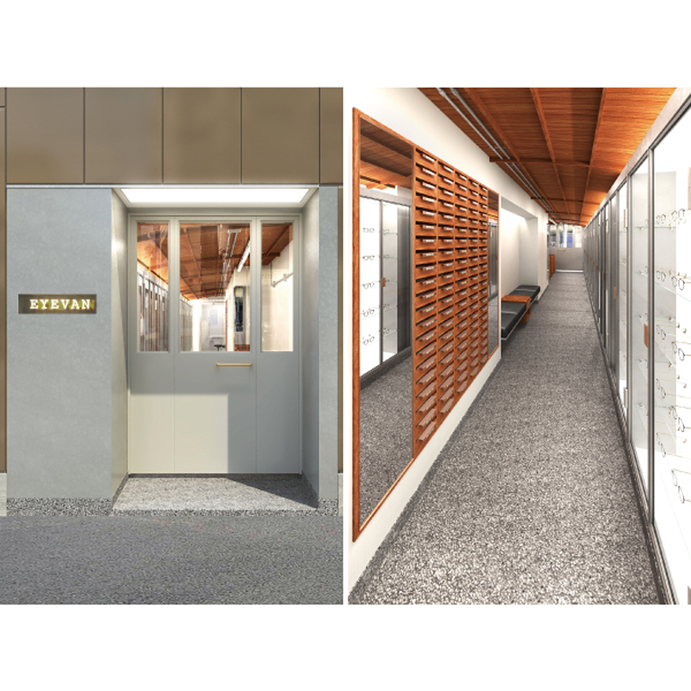 2021年3月19日(金)、EYEVAN(アイヴァン)の旗艦店が東京青山の骨董通りにオープンする。店舗は細長く、窓のない長屋のような形状を生かすため、日本的な要素を取り込みつつモダンなデザインに落とし込んだカリフォルニアのケーススタディの建築家が手がけた町工場「small factory」 をイメージ。