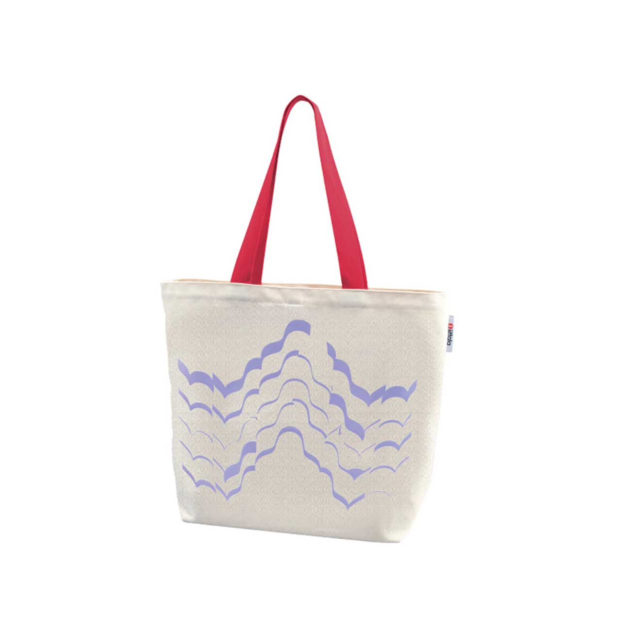 1万6,500円(税込)以上の注文で、「アルヴァ・アアルトコレクショントートバッグ」がプレゼントされる。アアルトベースのカーブを用いた波のようなグラフィックが特徴のトートバッグ。2021年のテーマカラーであるアメジストカラーが採用されている。ハンドルはイッタラのロゴマークと同じレッド。帆布製。