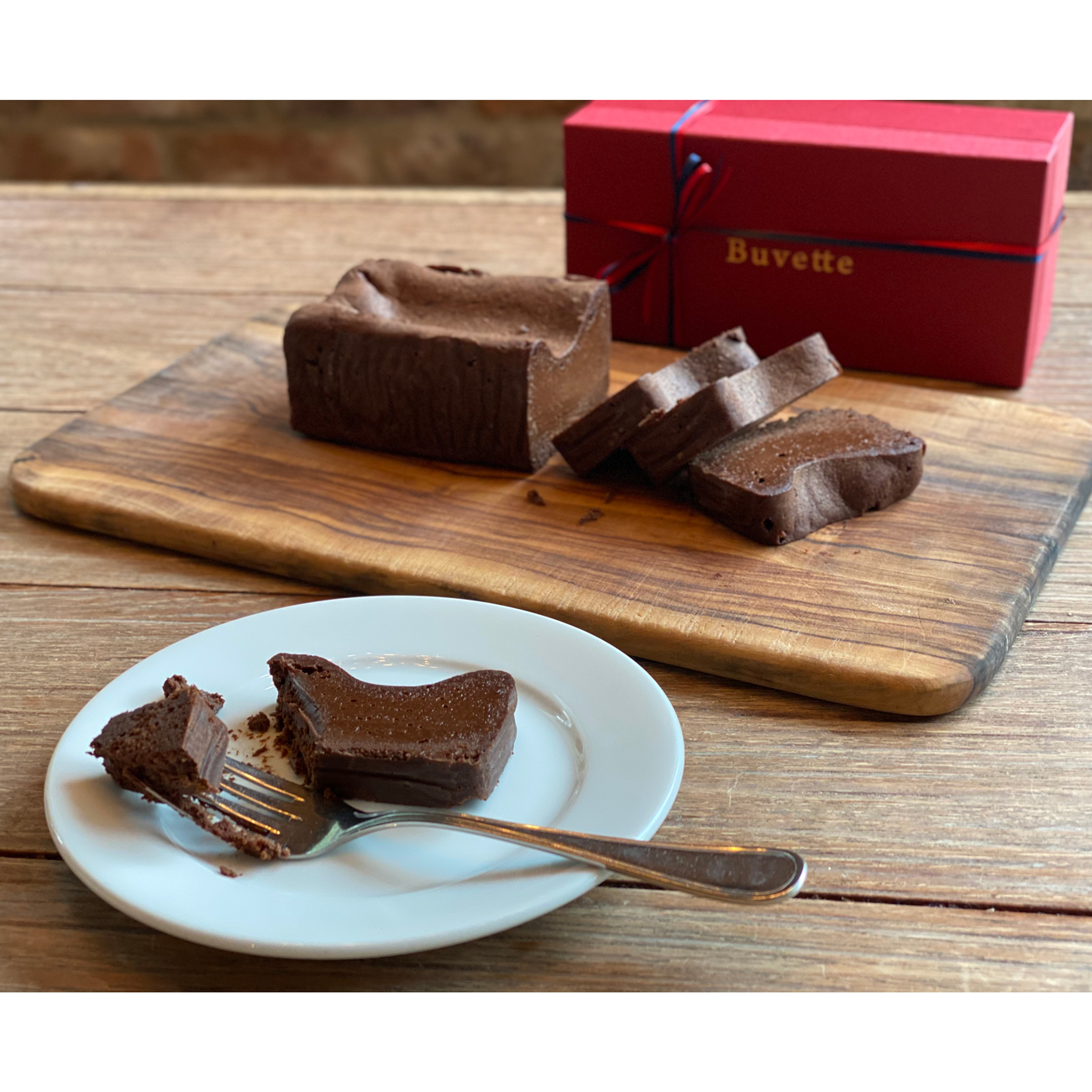 第1弾商品としてBuvette 人気のデザートメニューの一つである“チョコレートムース”をしっとりと焼き上げ、滑らかで濃厚な味わいに仕上げた「焼きチョコ ムース」をオンライン限定で販売。しっとりと濃厚でとろける、生チョコレートのようで、ガトーショコラのような新感覚な食感が楽しいオリジナルスイーツとなっている。
