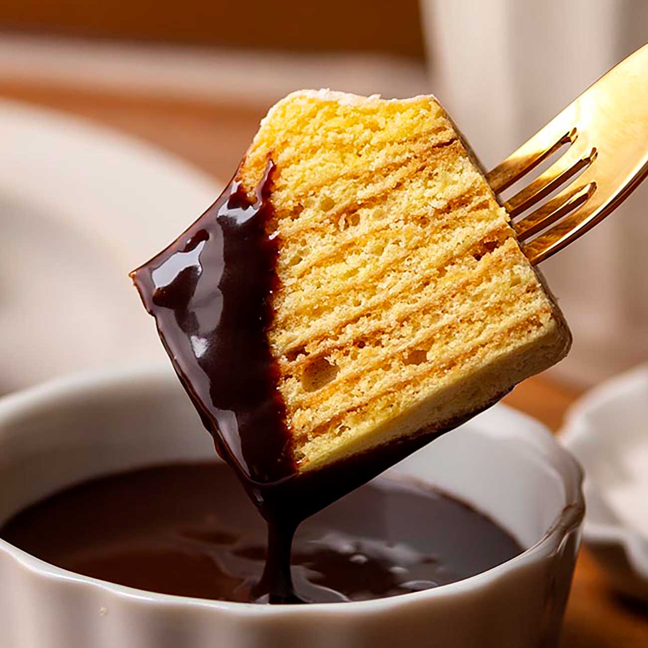 専用の箱に入って販売され、家庭のレンジ(500W)で30秒温めるだけで出来立てのような美味しさを再現できる。外はカリっと、中はしっとりとした食感で、温めることでバターの香りがより引き立つ。コーヒーや紅茶などのホットドリンクと相性がよく、ホイップクリームやホットチョコレートを添えるなどのアレンジも楽しめる。