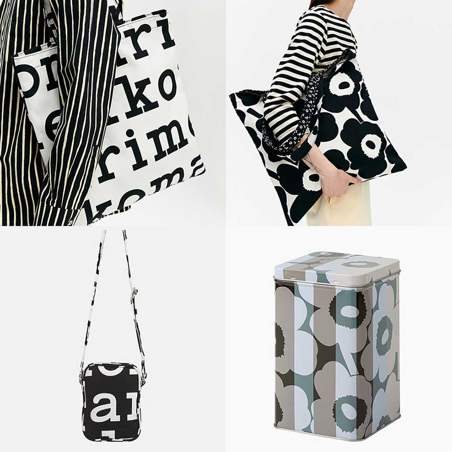 マリメッコ松屋銀座店限定品としては、バッグ3種とティンボックスをラインアップ。バッグはいずれも過去シーズンの生地をアップサイクルし、表面・裏面で使用されている生地が変わる。ティンボックスはリリースがあまりされないアイテムなのでレアアイテム化しそうだ。