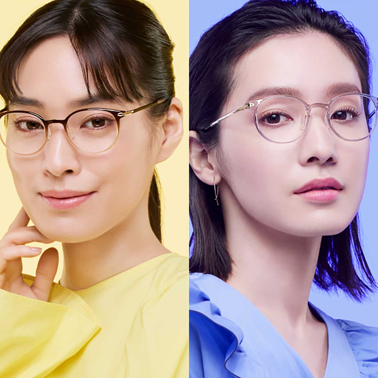 肌、目、髪の毛の色などに調和し魅力を引き出す色として話題になっているパーソナルカラー。「イエローベース」と「ブルーベース」の2種に分けられるとされているが、それぞれに似合うフレームカラーが提案されている。
