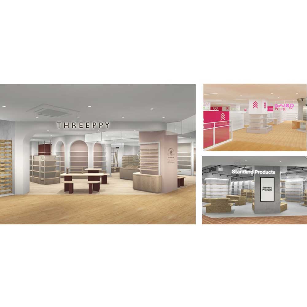 2022年4月15日(金)に、ダイソーの主要な3ブランドである100円ショップ「DAISO」のグローバル旗艦店、300円ショップの「Standard Products(スタンダードプロダクツ)」「THREEPPY(スリーピー)」のグローバル旗艦店がマロニエゲート銀座2にオープンする。