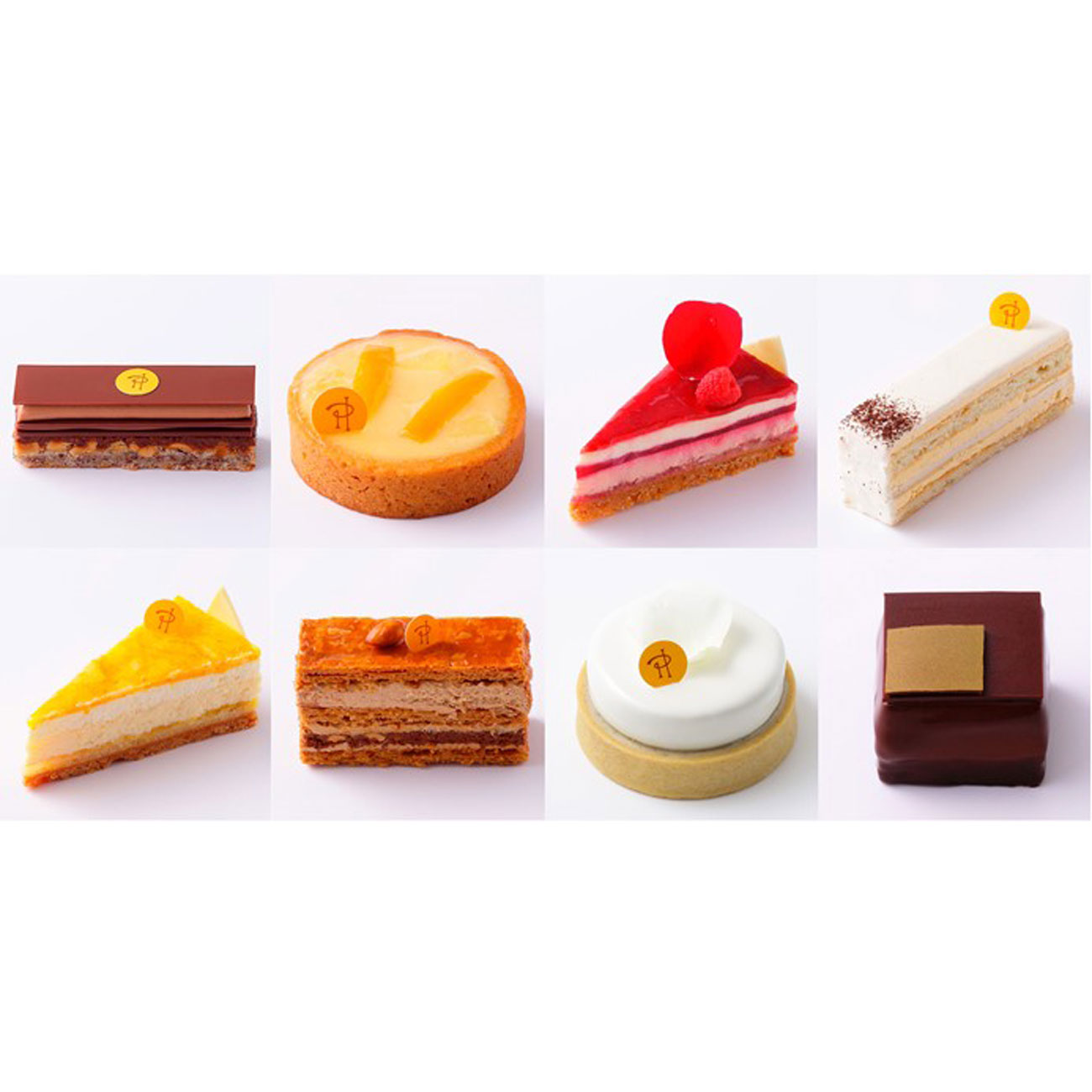 ドゥ ミルフィーユ/キャレマン ショコラ/サティーヌ/チーズケーキ イスパハン/アンフィニマン ヴァニーユ/プレジール シュクレ/タルト アンフィニマン シトロン/タルト アンフィニマン ジャスマン/ボンボンショコラ/マカロンなど