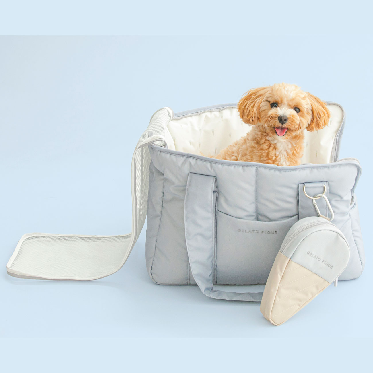 フードボウルは水がこぼれないよう適度な重みで食洗器にも対応。マナーポーチは、表地に耐久性のあるコーデュラ生地、裏地に抗菌防臭加工を施した機能性生地を採用するなど、デザインだけでなく使い勝手も考えられたアイテムが揃う。