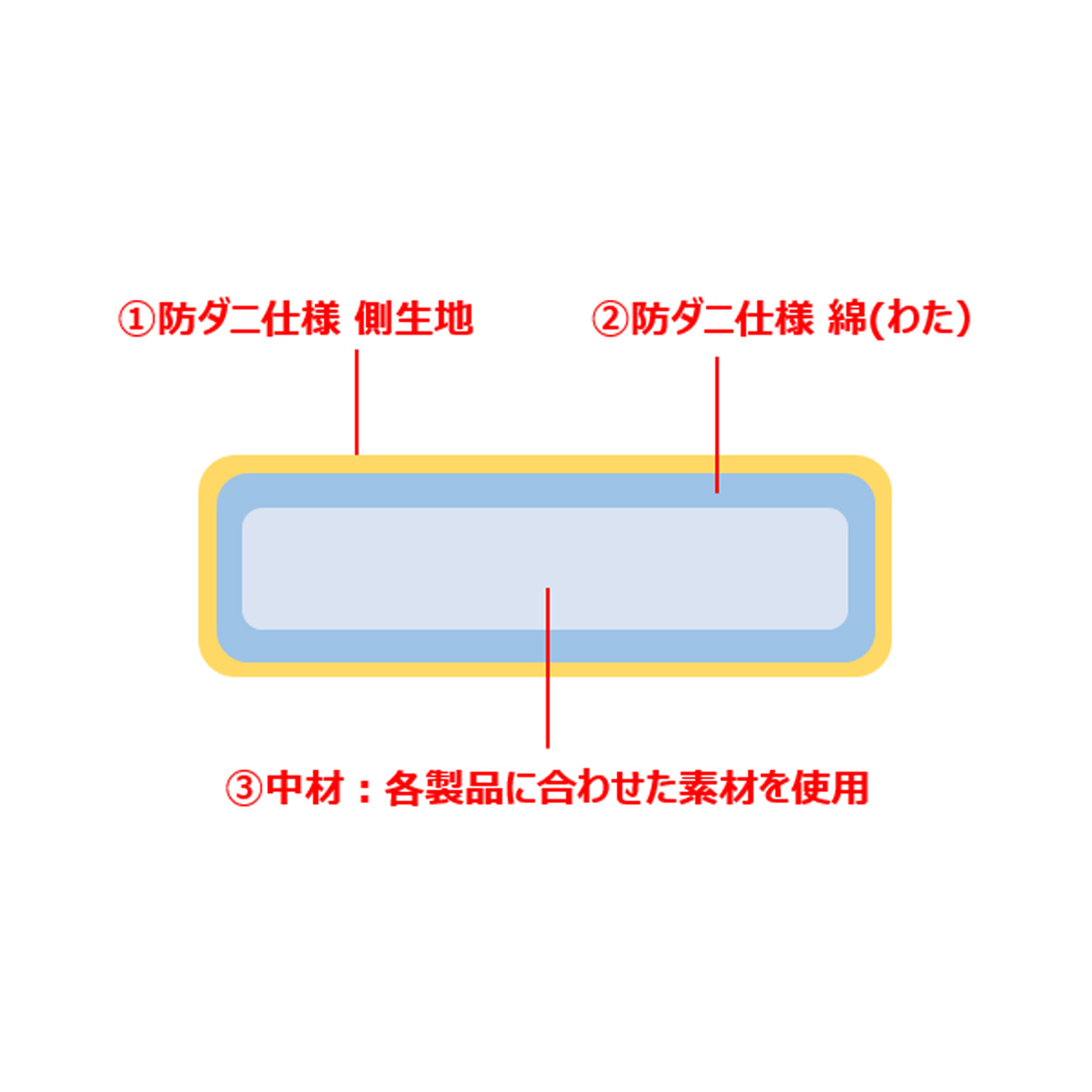 三層構造でダニの侵入、繁殖を予防。外側は高密度に織り上げた生地を採用することで、ダニが中材へ侵入しにくい仕様に。また、増殖抑制・抗菌防臭効果のある綿を使うことで、ダニの増殖を抑える。掛ふとんとまくらはまるごと、敷ふとんはカバーを洗濯機で洗うことできるので、寝汗が気になるこの時期も清潔に仕様できる