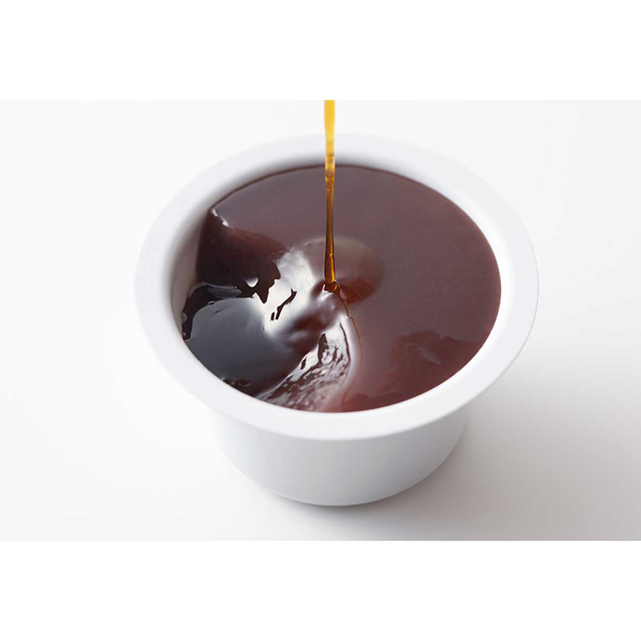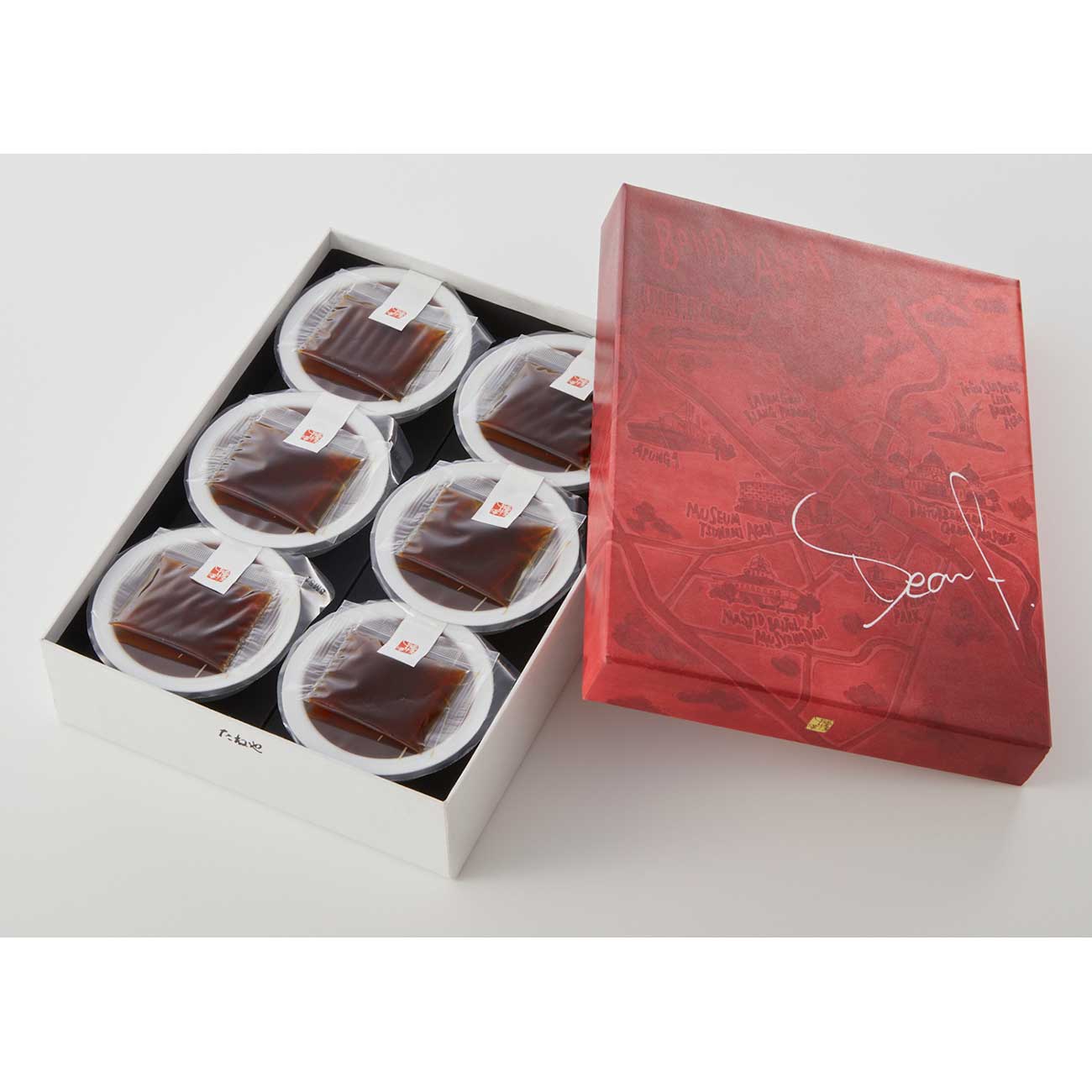 「ディーン・フジようかん」は北海道産小豆を使い、たねや独自の『本生製法』で作られた「本生羊羹」にディーン氏が好きなコーヒーソースをトッピング。焙煎や豆を挽く工程にこだわり、雑味が出ないよう低温の水でじっくりと抽出し、香りがよく味わい深いコーヒーソースに仕上げた。最初の一口で本生羊羹のみずみずしさを味わったあと、別添のコーヒーソースをかけることで豊かに広がるコーヒーの風味を楽しめる。