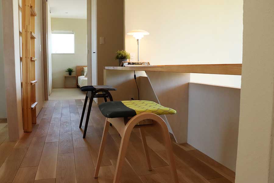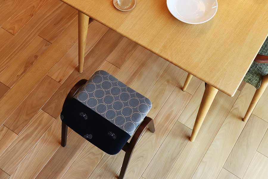 スツールのボディは「ビーチ材ナチュラル」と「ビーチ材ウォールナット」の2種から選べる。張地は「tambourine」柄が2色、「choucho」柄が1色を展開する。