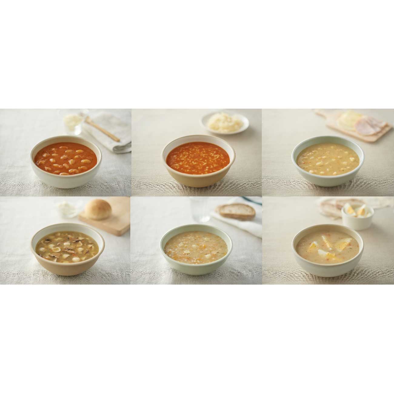 スープを食べる文化が根づいたポーランドの中でも代表的なものを中心に6種類をラインナッ。「トマトと豆」「トマトとお米」「豆」「きのことパスタ」「大麦」「ジュレック(ライムギの発酵スープ)」が登場する。全体450gとスープの量が多いため食事のメインとしたり、サイドメニューとして2人で分け合ったりできる。温めるだけで手軽に食べられるので、ストックしておくのもおすすめだ。