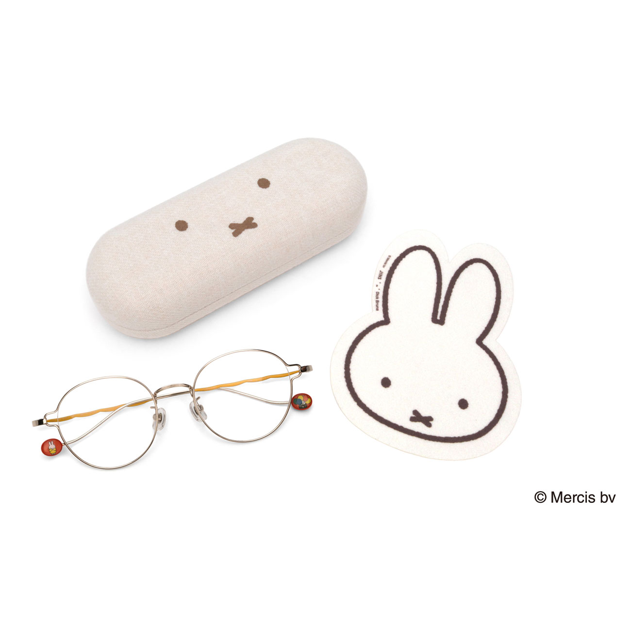 デザインソースとしてブルーナの120を超える絵本の中から6つの作品をセレクトし、シンプルでかけやすいメガネの細部に、絵本の世界観をさりげなく施した。使う人を選ばない細身で丸みのある玉型やニュアンスカラーのフレームを、絵本に登場するモチーフや「ブルーナカラー」と呼ばれるブルーナの絵本ならではの鮮やかな色使いでデコレーション。メガネにはコラボレーション限定のオリジナルケースやセリートが付属する。また、おばけごっこをする“おばけミッフィー”をモチーフにした、モコモコのメガネポーチなどの関連グッズも販売する。