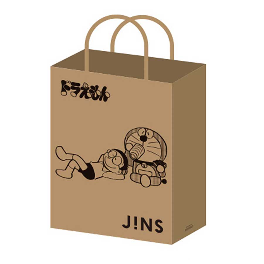 オリジナルデザインのショッパーをはじめ、メガネケース、メガネ拭きなど様々なドラえもんコラボデザインが登場する。