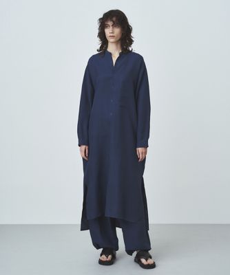 ▼【SALE】ATON (Women/Men)/エイトン SHRINK SILK | バンドカラーシャツドレス