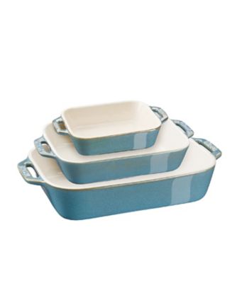 ▼【SALE】STAUB/ストウブ セラミック レクタンディッシュ 14/20/27cm 3点セット ターコイズ パンチボウル