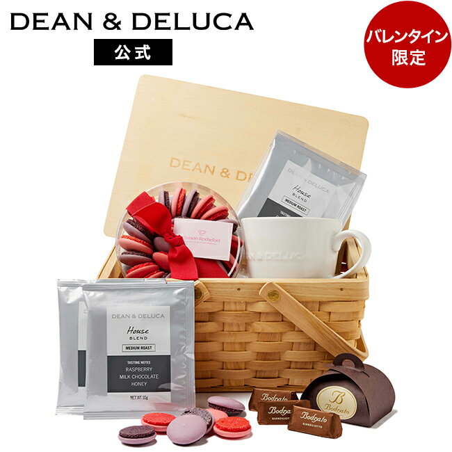 「バレンタインスイーツハンパー2023」は、お菓子だけでなくDEAN & DELUCAで人気のアイテムをバスケットに詰めたセット。コーヒーやマグカップも入る。