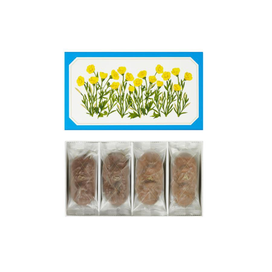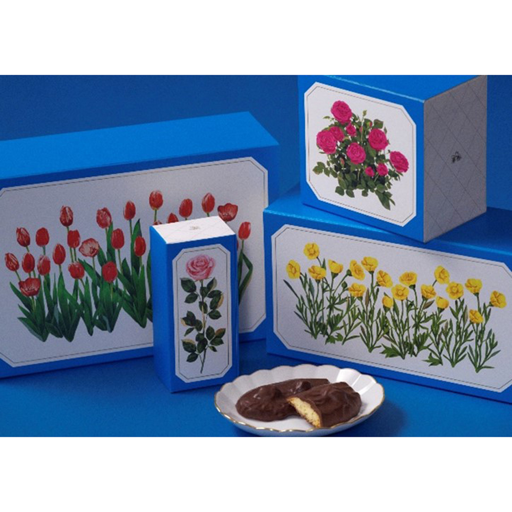 優しくそよ風にゆられる花と、春の光を受けた葉をパッケージに描き、お花をプリントしたチョコレートとマンディアンチョコレートを詰め合わせた。
