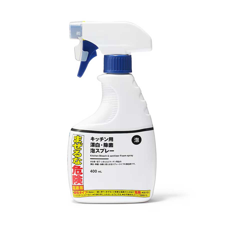 シンプルなパッケージが特徴の無印良品の商品だが、塩素系の洗剤のため「まぜるな危険」の表示がしっかりされている。表示義務があるためだが、無印良品の商品パッケージとしては異質で珍しい。