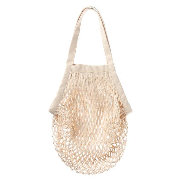 「コットンメッシュバッグ」は大小2サイズがいずれもセールに。フランスで買い物袋として使われているメッシュのバッグで、買い物バッグとしてだけでなく吊り下げ収納としても便利。これも半額になっている。