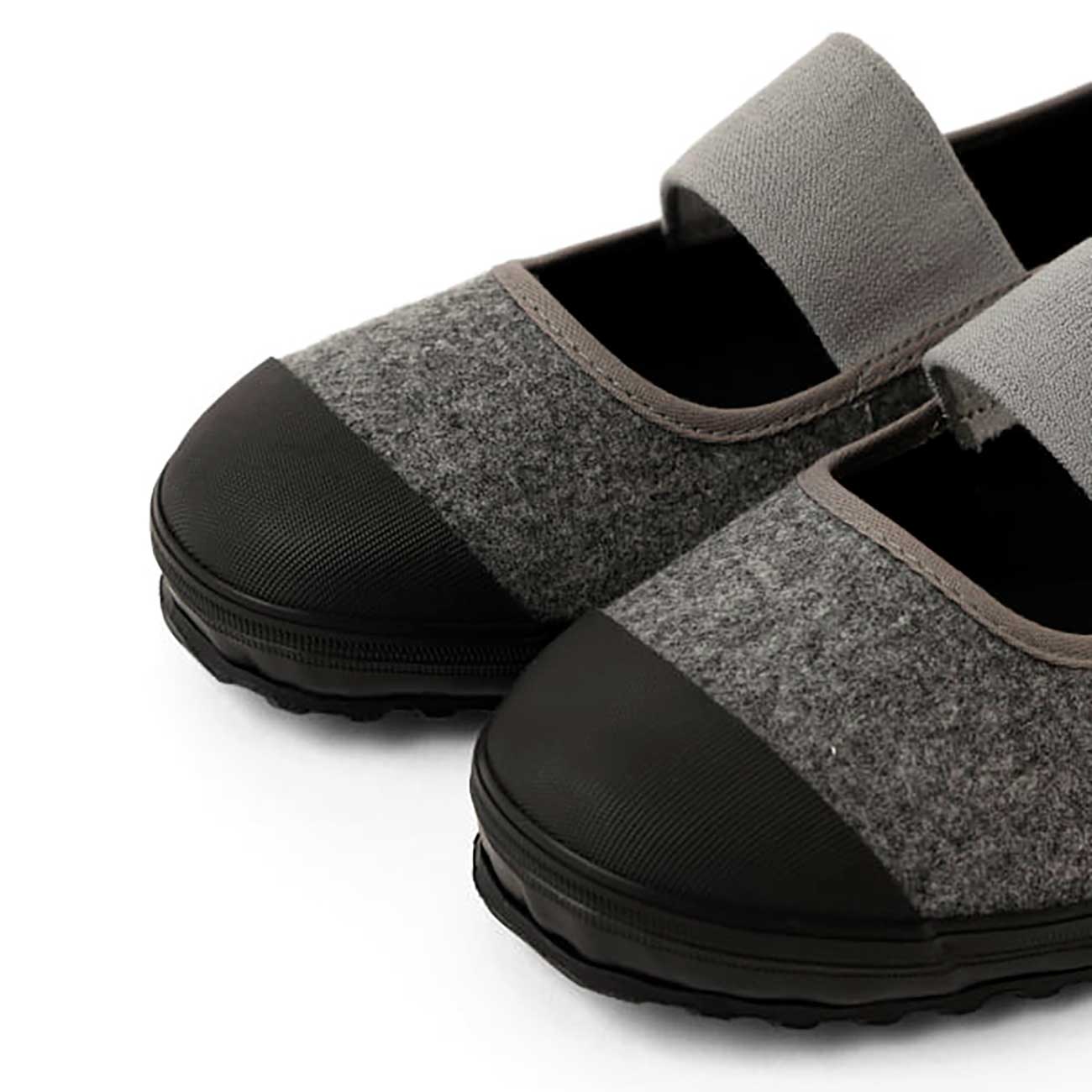 日本が誇るシューズメーカー・MOONSTARに製作を依頼した“大人も履ける”うわばき。アッパーは秋冬らしい起毛感があり、暖かみのある柔らかなフラノ素材を使用した。なつかしく見覚えのあるデザインをベースに、ゴム部分の幅を広くしてフィット感を高めたという。