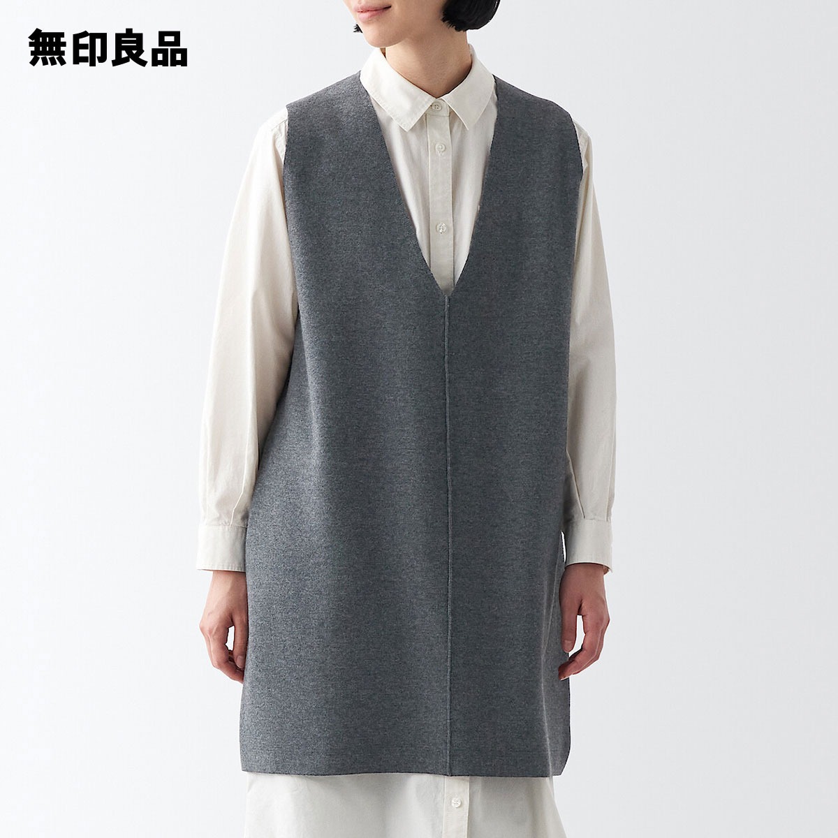 無印良品が1枚プラスだけでコーディネートをワンランク上げる「洗えるミラノリブ編みロングベスト」と「二重編みスウェットジャンパースカート」を発売した。