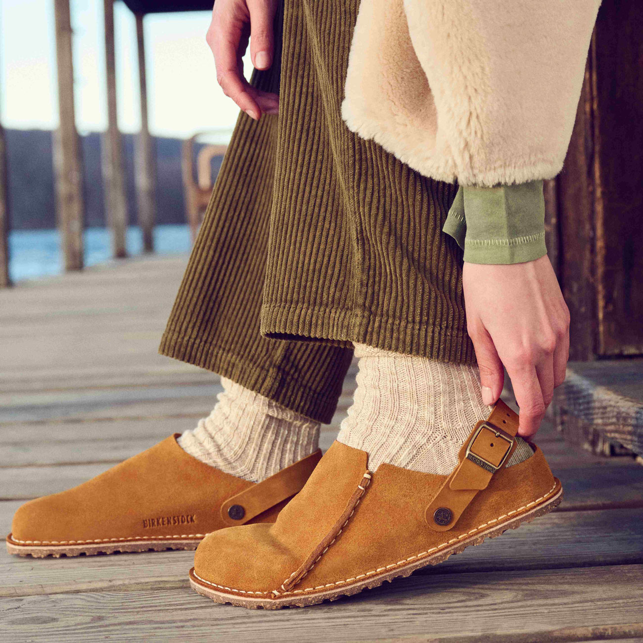 スムースレザーのバックストラップは、アッパー側に倒すことでクロッグスタイルでも着用可能。ラバーにコルクをミックスしたアウトソールは、室内でも屋外でも活躍してくれそうだ。カラーはブラック、ミンク、エスプレッソの3色展開となっている。