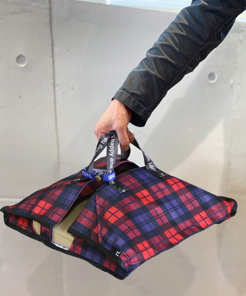 ピザやオードブル、お寿司、お弁当など平たい容器に入った物を水平に持ち運ぶことができるトートバッグ。真ん中で折りたたむと、ドリンクや調味料なども運べるトート型になる2way仕様だ。