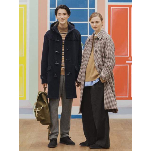 メンズはダブルフェイスダッフルコート(12900円)やモッズコート(7990円)、フランネルシャツ(2990円)、カシミヤクルーネックセーター(9990円)など13アイテムを用意。また、ソックス(390円)、マフラー(1500円)、バックパック(3990円 いずれも税抜)はユニセックス展開で登場する。
