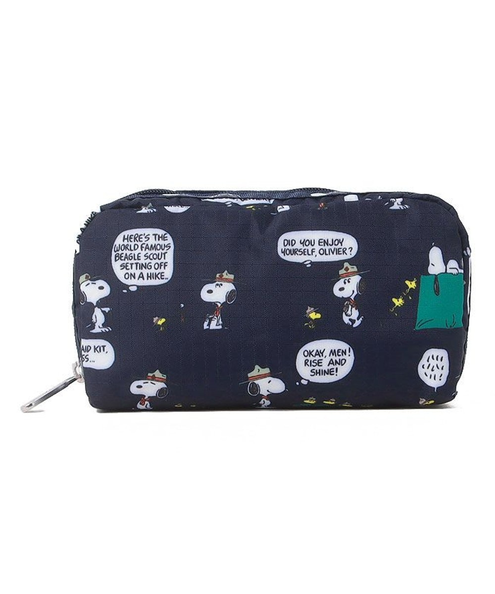 ネイビーベースに、スヌーピー率いる「ビーグル・スカウト」がハイキングに出かける様子を描いたデザイン。落ち着いたカラーなので年齢問わず、シーズンレスにお使いいただける。
