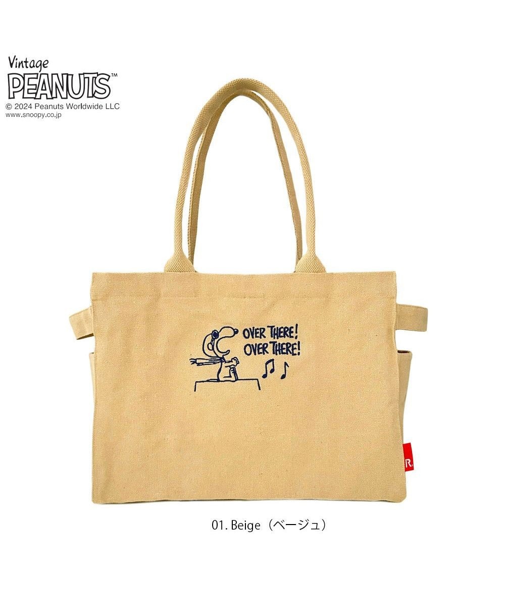 厚手のコットンキャンバス生地に、スヌーピーの刺繍が施された大容量トート。環境に優しいリサイクルコットン素材を採用。A4サイズのファイルや13インチのPCケースも入り、両サイドのポケットにはドリンクや折りたたみ傘をいれておくのにおすすめ。