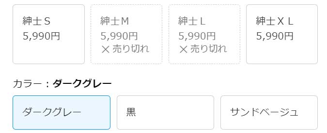 公式ネットストアでは「ダークグレー」「黒」は完売となっているが、