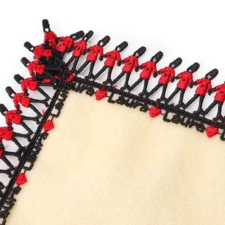 八重咲のイングリッシュローズとLAURA ASHLEYの文字を繊細なレースで表現。