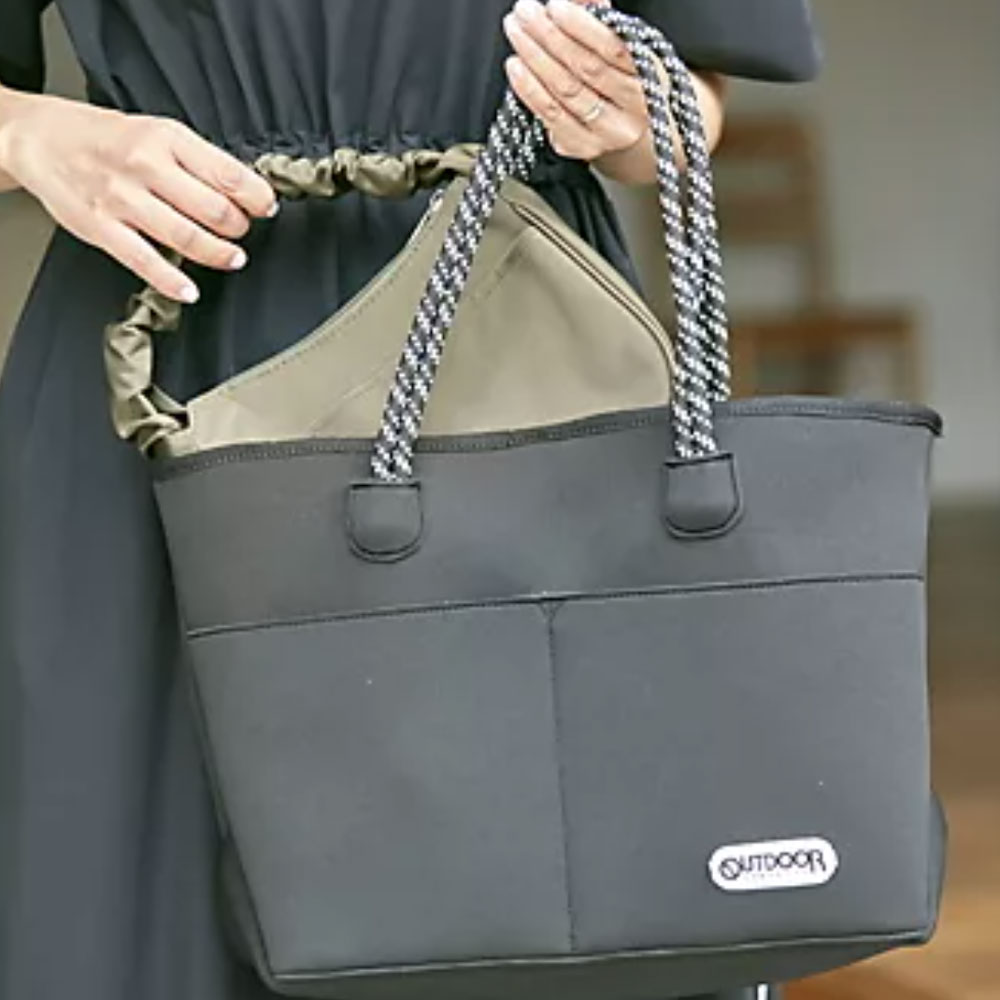 ポリエステル素材を使ったトートとクシュっとした持ち手がかわいらしい保冷バッグのセットになった、便利な別注バッグが登場。
