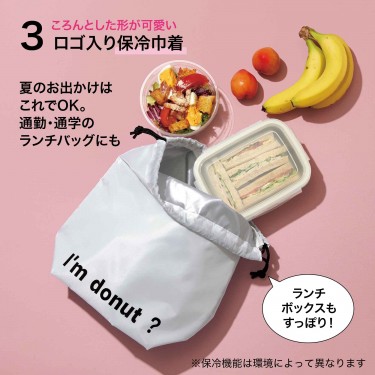 新食感の“生ドーナツ”が大人気で、連日行列が絶えない人気店の「I’m donut?」。今回はそのショップ袋を再現したクリアトートを製作。その他に公式キャラクターの“あいむくん”のポーチチャーム、ロゴ入り保冷巾着の贅沢なセットになっている。