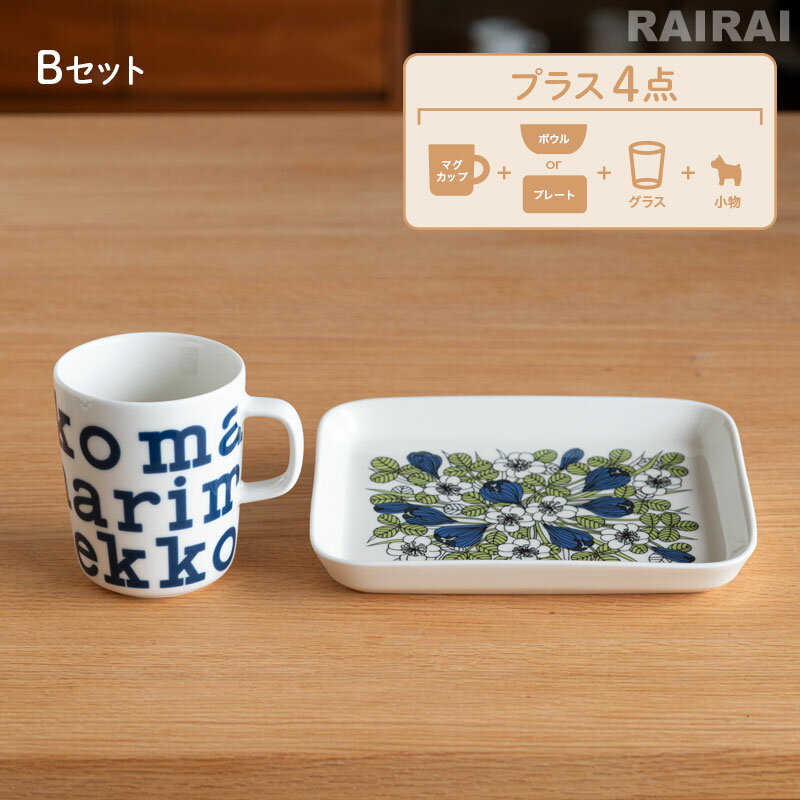 ・Aセット(Unikko マグカップ 250ml×1/Krokus 四角プレート ブラック×1)+ 4点