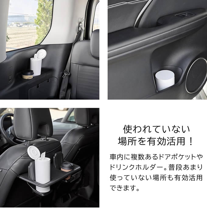 車のドリンクホルダーにピッタリ収まるボトル型のウェットティッシュケース。底部の直径は7.4cmとコンパクトなので車以外にもキッチン、洗面所、デスクなどにも置いておける。