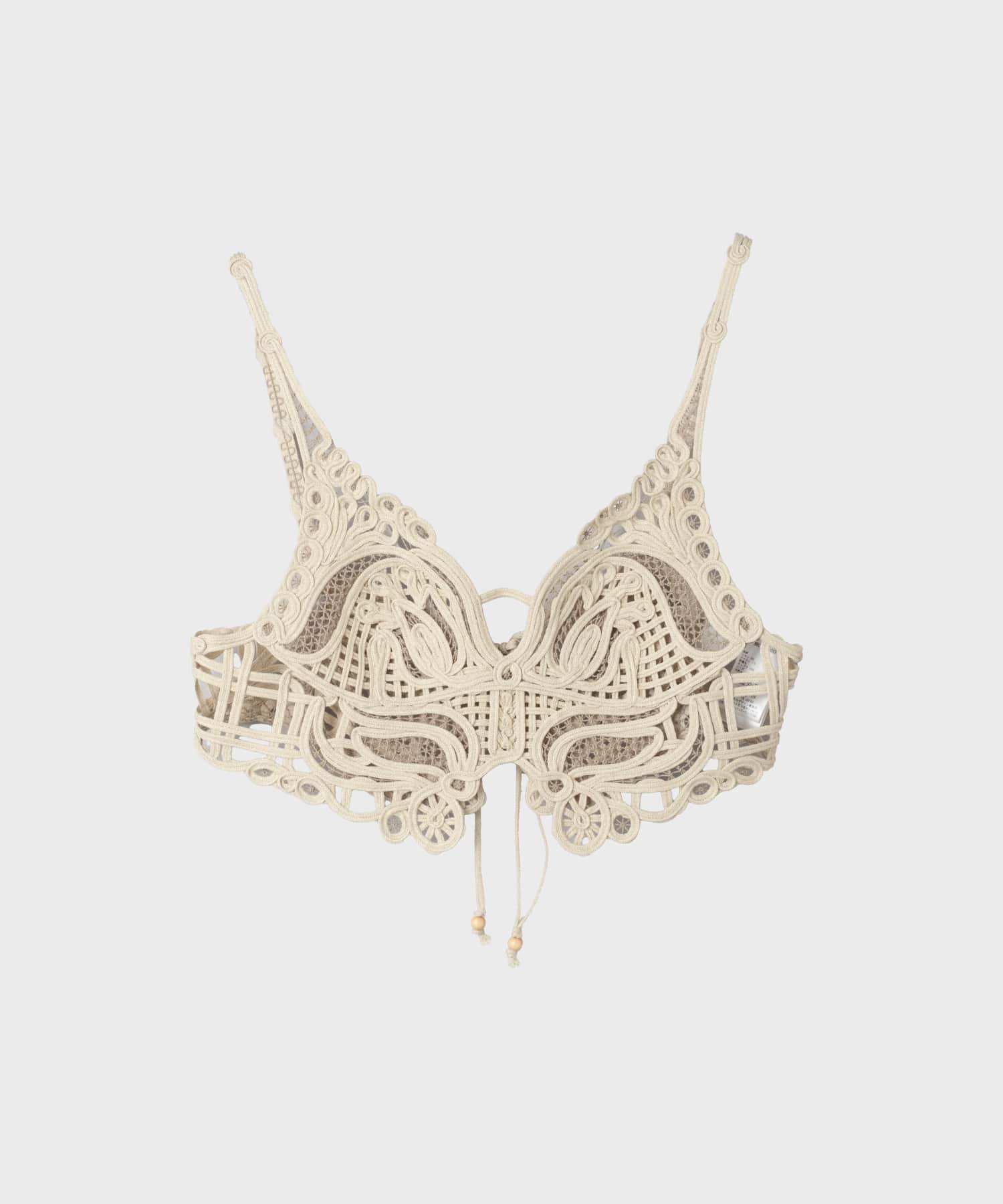 上品な透け感と清涼感が印象的なキャップスリーブニットトップス、アイコニックなコード刺繍のベスト、コード刺繍のパッチポケット付きのスウェット、淡い光が灯った岐阜の盆提灯を思わせるニットスカートとカーディガンなど春らしいアイテムがそろいます。