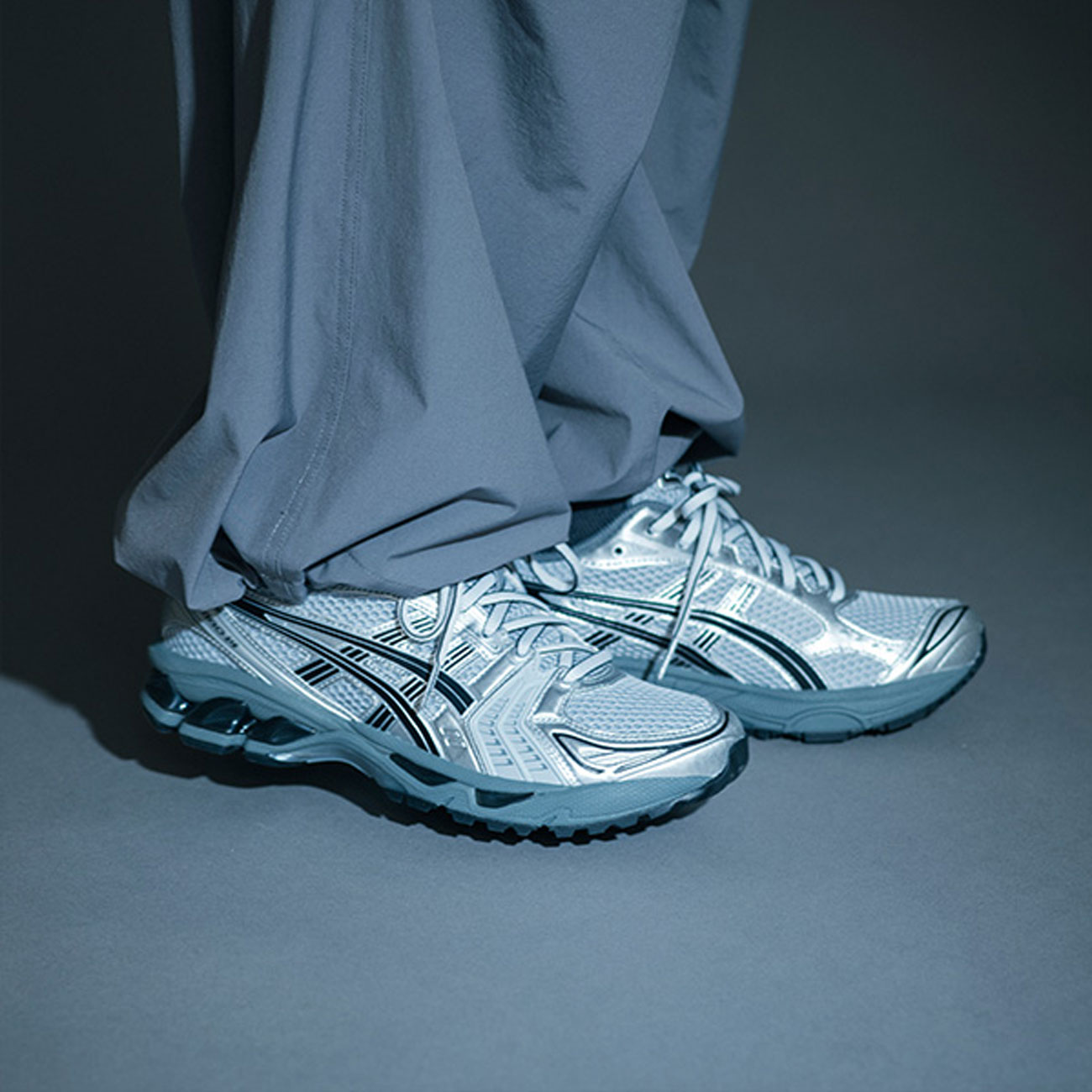 ボリューム感のあるシルエットと、GELテクノロジーによる衝撃吸収性が特徴の名作モデル「GEL-KAYANO 14」をベースに、2000年代のトレンドを彷彿とさせるデザインを取り入れ、現代的にアップデート。