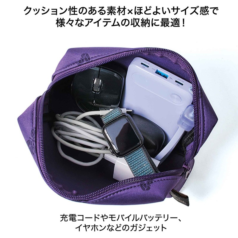 お洒落なパープルカラーをベースに、NEEDLESの代名詞である蝶のモチーフがランダムに配置されたデザイン。充電器やスキンケアアイテム、アクセサリーなど様々なものを入れるのに最適なサイズ感。ちょっとしたお出かけの際の小物入れとしても活躍してくれます。