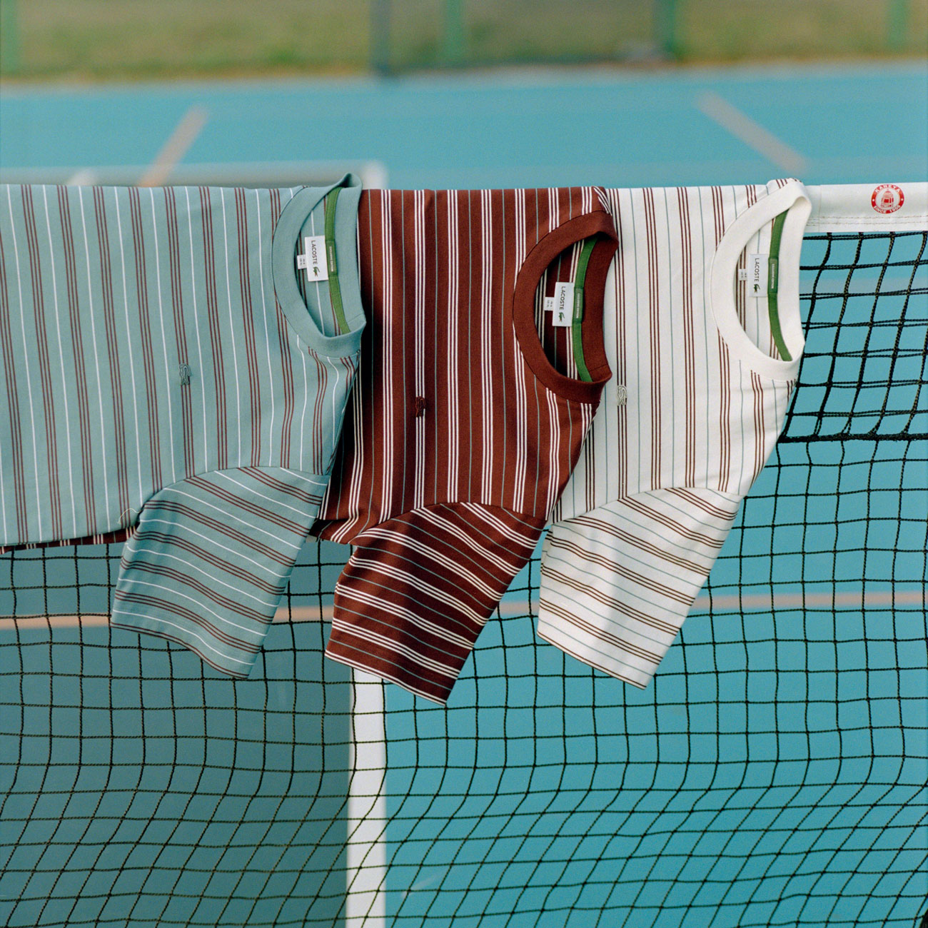 アイコニックなポロシャツが登場し、レディースはメンズのサイジングを基にしたオリジナルのポロシャツが、ADAM ET ROPE’独自の配色によるボーダー柄と、ラコステのシーズンカラーから選ばれた無地の2型を展開。