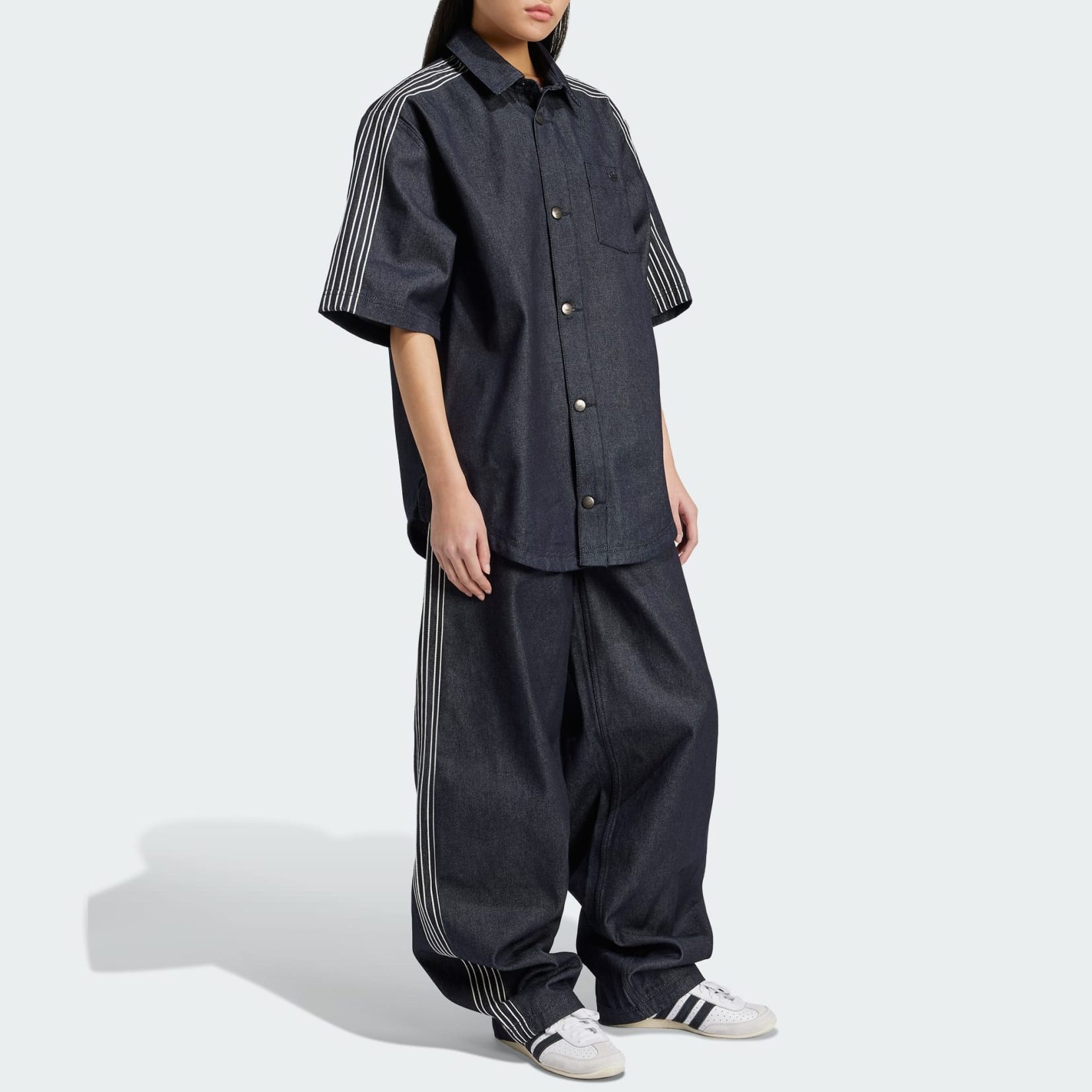 深みのあるブルーデニムに、アディダスのDNAを受け継ぐスリーストライプスを肩にあしらい、さりげないアクセントをプラス。