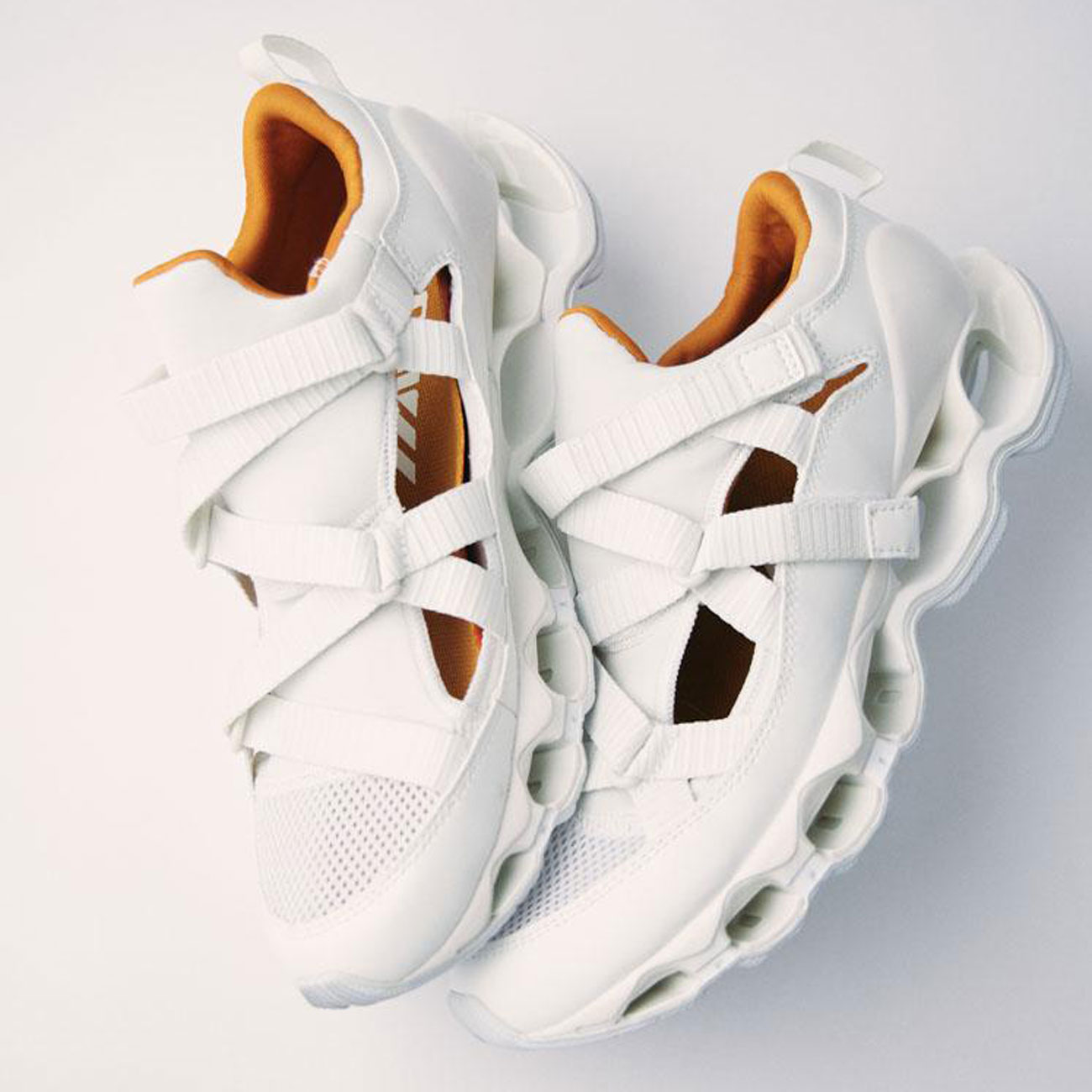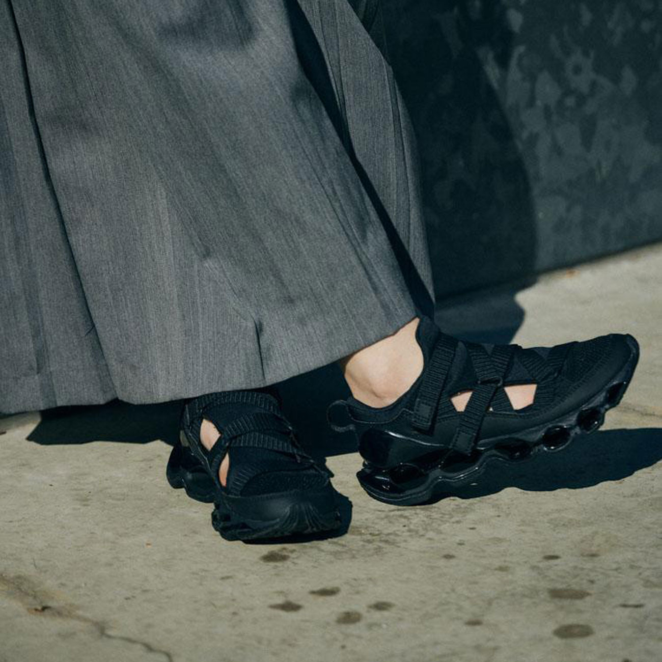 陸上競技用スプリントスパイクからインスパイアされたアッパーデザインや、独自開発した空洞のあるウエーブプロフェシーソールなどデザイン性と機能が人気の「WAVE PROPHECY STRAP」をアップデート。