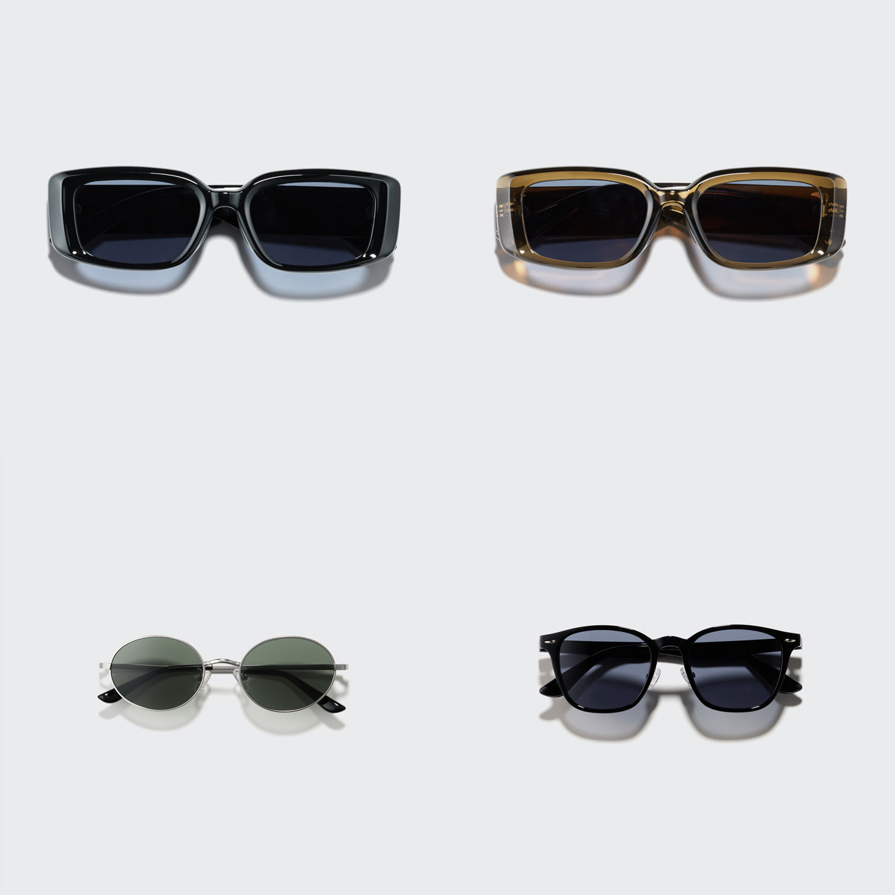 ユニクロの新型「サングラス/レクタングル」(1,990円)は、太めテンプルが特徴の長方形デザイン。人気モデルの「サングラス/スクエア」にはスモークレンズが追加されました。
