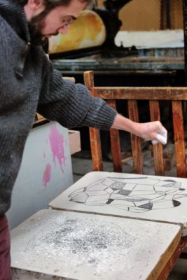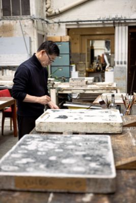 パリの版画工房Idemで、石版に直接描いた原画を元に制作。一点一点にシリアルナンバーと皆川氏の直筆サインが施されており、コレクターズアイテムとしても非常に価値の高い作品です。