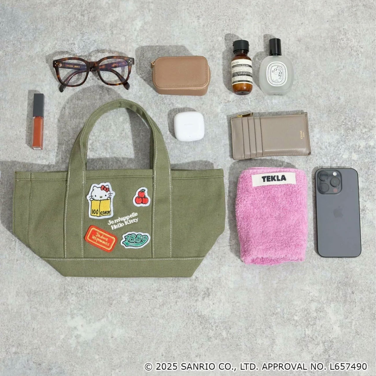 ハローキティが誕生した70年代のイラストを採用し、「古着屋さんにありそうなワッペントートバッグ」をイメージして製作。フレンチブランドのSLOBE IENAらしく、フランス語のロゴワッペンやエッフェル塔ができた年数「1889」のワッペンが、レトロで遊び心あふれる雰囲気を演出します。