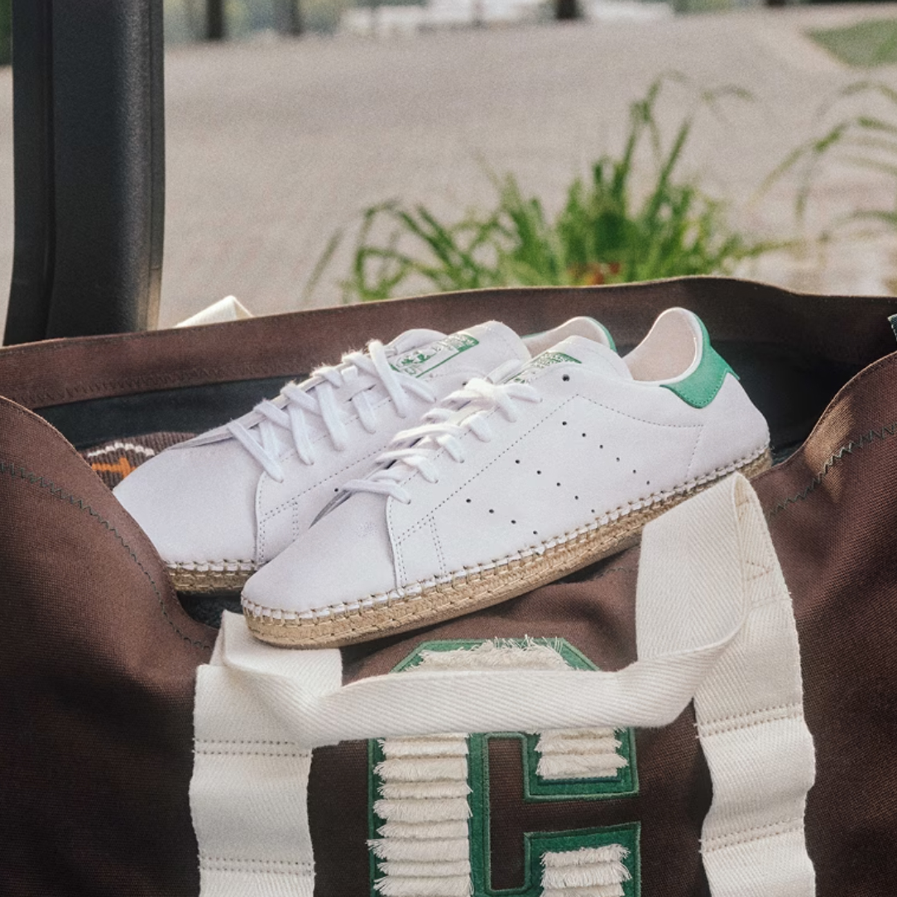 アディダスの名作「スタンスミス」をベースに採用。エスパドリーユソールに変更することで、リラックスしたリゾート感をプラス。