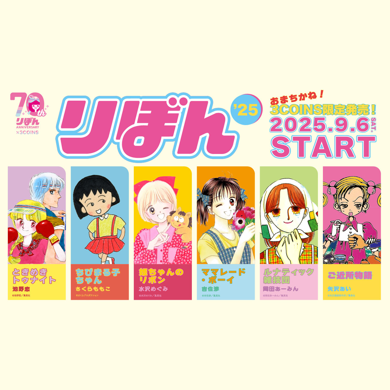 3COINS(スリーコインズ)は創刊70周年を迎える少女まんが雑誌『りぼん』(集英社)とのコラボレーションアイテムを2025年9月6日(土)より発売します。