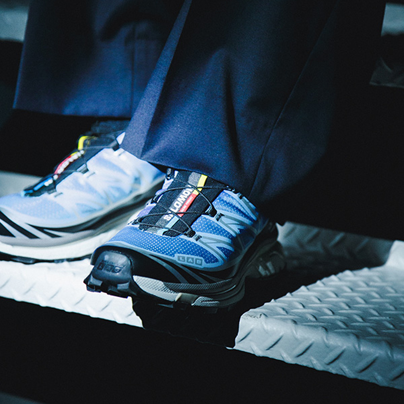 「XT-6」は2013年にトップアスリートとの共同開発で誕生して以来、アイコニックなテクノロジーを継承しつつ、タウンユースに映えるデザインで人気を集めています。今回の別注カラーはURBAN RESEARCHの今季キーカラーであるブラウンと相性が良い、「マリンブルー」をセレクト。ソリッドでありながらも合わせやすいアクセントカラーで、斑点入りのミッドソールや反射性のあるシューレースなど、アウトドアを感じさせるディテールも光ります。