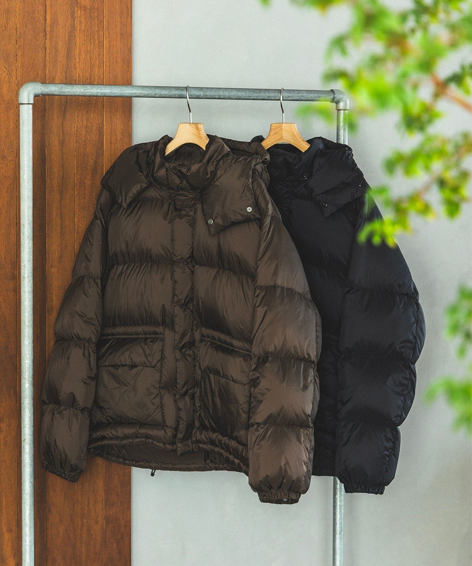 アウトドアテイストのフードダウンを型から別注。高い保温性を誇る800フィルパワーのダウンを使用し、高い保温性と軽さを徹底的に追求しました。ボリュームが出過ぎないようダウン量を調整し、暖かさとすっきりとしたシルエットを両立。