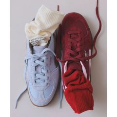 爽やかなサックスブルーと、シックで秋冬の足元に映えるボルドーの2色が用意されており、これらのカラーは通常のインラインモデルにはない、別注ならではの特別な色合いです。上質なスエードとガムソールのクラシックな組み合わせが、洗練された高級感と懐かしさを演出し、大人の足元を優雅に彩ります。